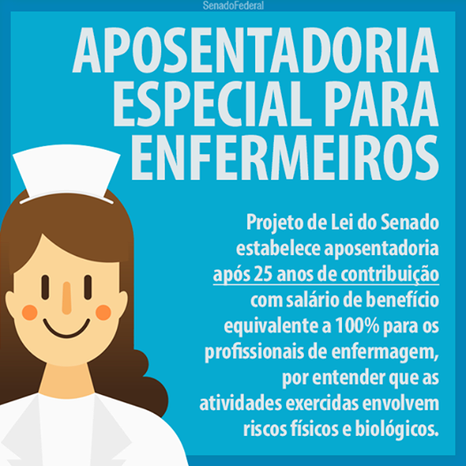 Assim como outras categorias, como a dos professores, os enfermeiros poderão ter um regime especial de aposentadoria. O PLS 349/2016 estabelece que esses profissionais poderão se aposentar depois de 25 anos de contribuição na área de enfermagem, uma vez que eles exercem atividade com riscos físicos e biológicos. A proposta prevê também que a aposentadoria […]